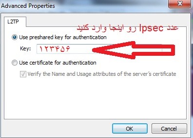 در اینجا باید شما ipsec را وارد کنید که عدد ۱۲۳۴۵۶ میباشد.